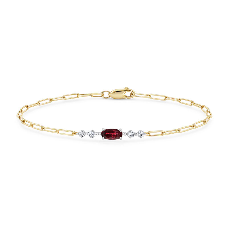 Round Sapphire & Diamond Gold Paperclip Chain Bracelet
