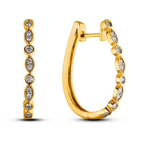 Diamond stud earrings featuring twenty-four round brilliant-cut Canadian diamonds, with a total weight of 0.15 carat. Set in 10K gold.