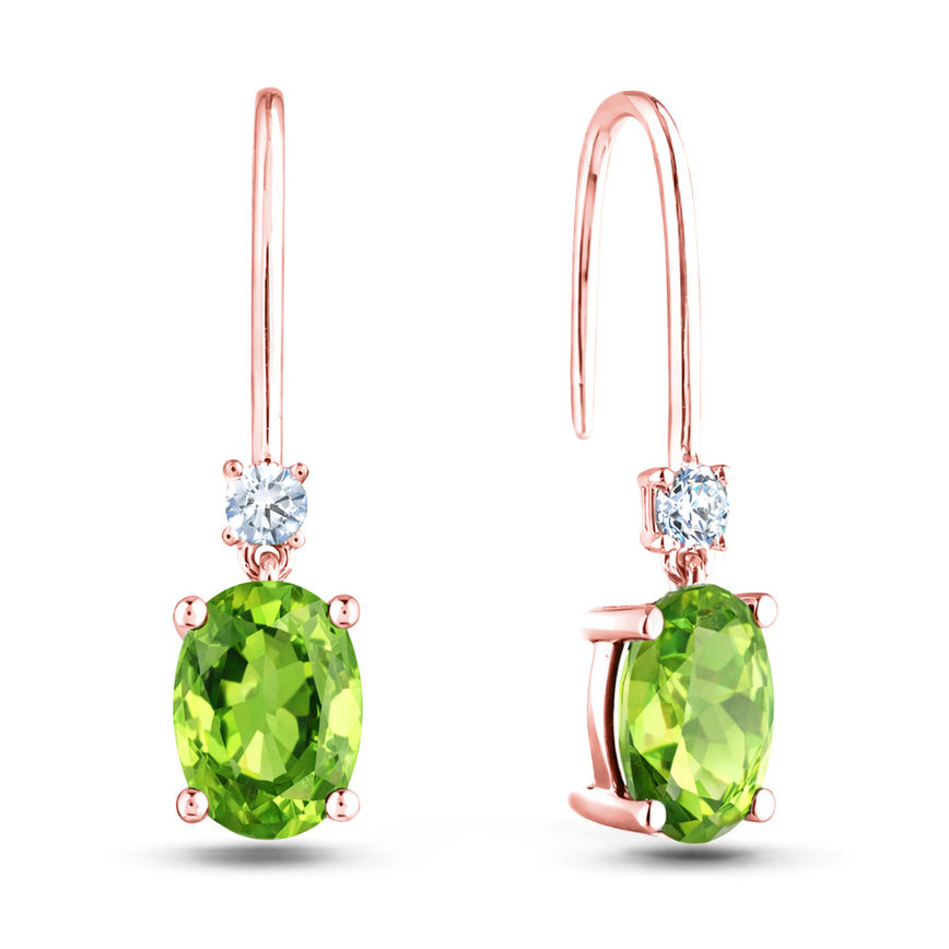 Oval Peridot & Diamond Dangle Drop Earrings